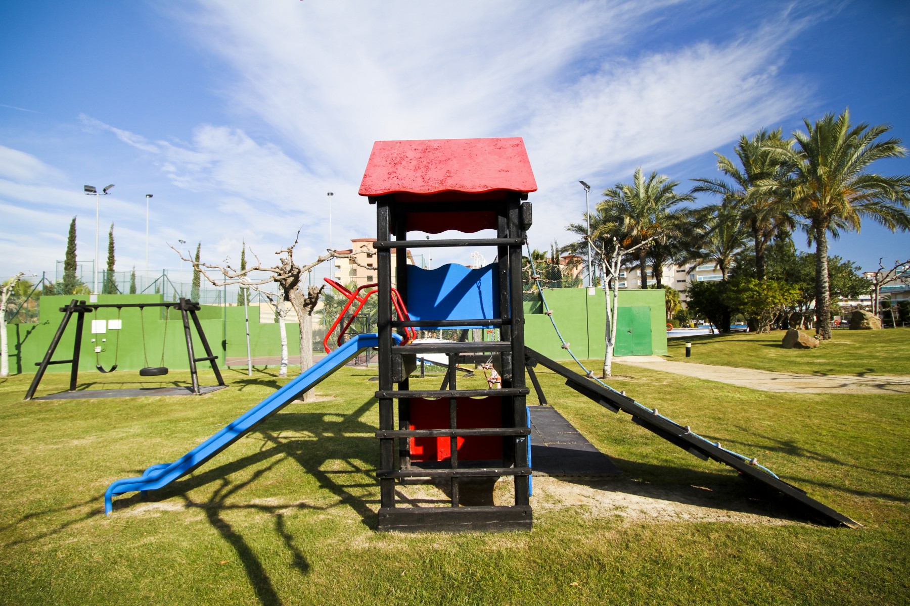 The accommodation Los Juncos has capacity for 6 people as it consists of two double bedrooms and a double sofa bed in the dining room. It also has a fully equipped American kitchen and a bathroom. From the dining room we access to its large terrace in which we have views of the common areas and Port Aventura.